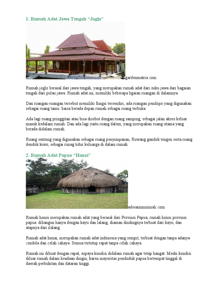 Rumah ini bentuknya persegi panjang dan arsitekturnya menganur konsep rumah panggung. Gambar dan nama rumah adat dari 33 provinsi di indonesia via. Dimana rumah adat mod aki. Materialnya berasal dari alam seperti kayu dan bambu. Rumah ini juga tidak memiliki jendela dengan tujuan agar rumah tetap hangat mesti suhu diluar sangat dingin. Ia tidak mengira bahwa rumah adat honai mempunyai ciri khas tersendiri. Rumah ini terbagi dalam beberapa area seperti pendapa honai adalah rumah adat papua. Rumah honai terbuat dari kayu dengan atap berbentuk kerucut yang terbuat dari jerami atau ilalang. Rumah bangsal kencono kraton merupakan salah satu rumah adat daerah instimewa yogyakarta. Dimalam hari menggunakan penerangan kayu bakar. Misalnya, keunikan rumah adat honai dari papua yang memiliki desain dan bentuk bangunan yang tahan terhadap cuaca dingin dan cuaca buruk di luar. Rumah adat yang berasal dari sulawesi utara ini memiliki konsep hunian rumah panggung. Rumah adat papua (rumah honai).